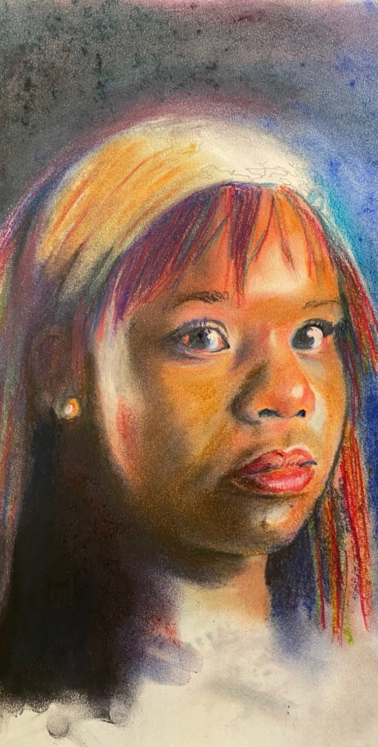 This picture is drawn with pastels, for more options see our fee structure.